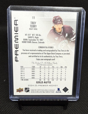 2024-25 UD Premier #19 Troy Terry Gold Auto /25