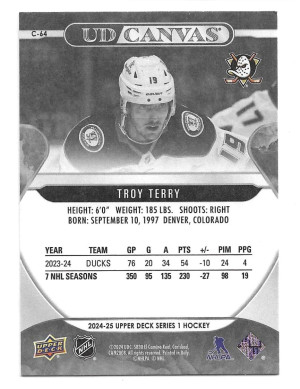 2024-25 Upper Deck UD Canvas Black & White #C64 Troy Terry - Anaheim Ducks