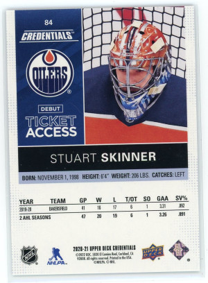 2020-21 Upper Deck Credentials #84 Stuart Skinner Rookie Blue 93/99
