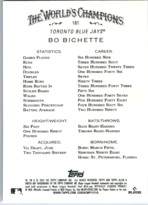 2025 Topps Allen & Ginter #181 Bo Bichette Mint