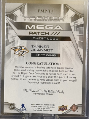 2022-23 Premier Tanner Jeannot Mega Patch Chest Logo /22