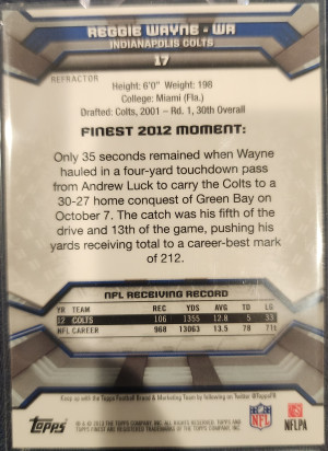 2013 Topps Finest Reggie Wayne Refractor