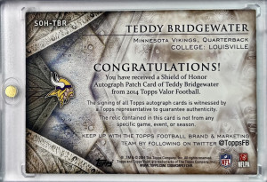 2014 Topps Valor Teddy Bridgewater Discipline RPA /25