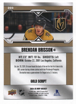 2024-25 Upper Deck MVP Gold Script Parallel #223 Brendan Brisson RC