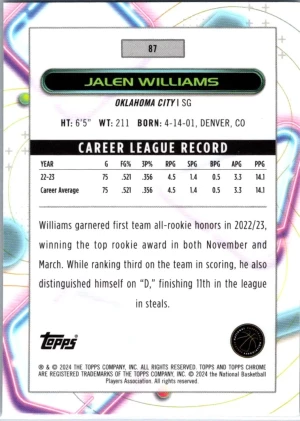 2023-24 Topps Chrome Cosmic #87 Jalen Williams