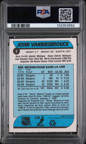 1986 O-Pee-Chee John Vanbiesbrouck RC PSA 8
