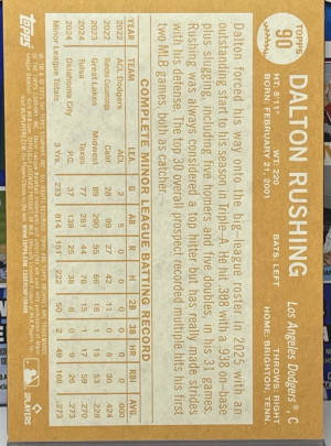 2025 TOPPS ARCHIVES - Dalton Rushing RC #90 - Los Angeles Dodgers