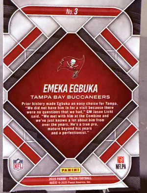 2025 Panini Prizm Emergent #3 Emeka Egbuka RC Tampa Bay Buccaneers