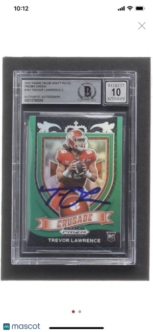 Trevor Lawrence signed 2021 Panini Prizm Draft Picks Prizm Green 161 RC Auto 10.
