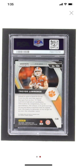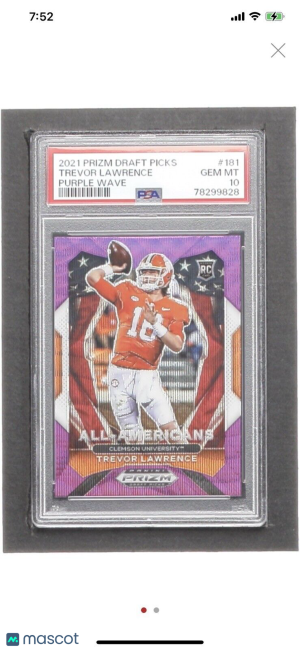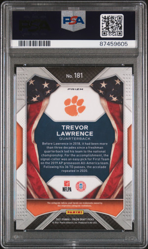 Trevor Lawrence 2021 Panini Prizm Draft Picks Prizms Purple Wave #181. PSA 10.