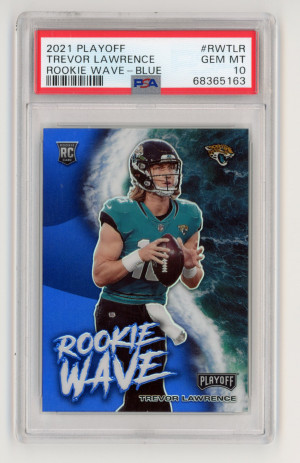 2021 Panini Playoff TREVOR LAWRENCE Rookie Card RC WAVE BLUE PRIZM - PSA 10 GEM