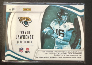 2021 Absolute Trevor Lawrence Rookie Premiere Auto Patch /25 Jaguars RC