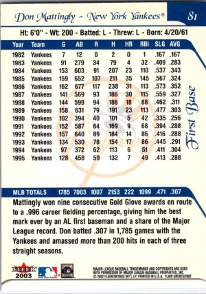 Don Mattingly #43 1993 Fleer Fruit of the Loom