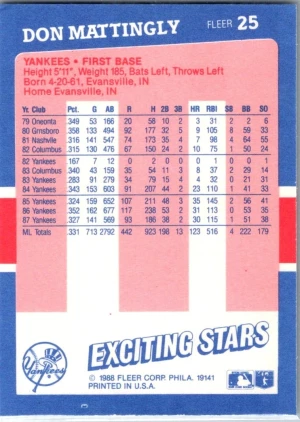 1988 Fleer Baseball's Exciting Stars #25 Don Mattingly