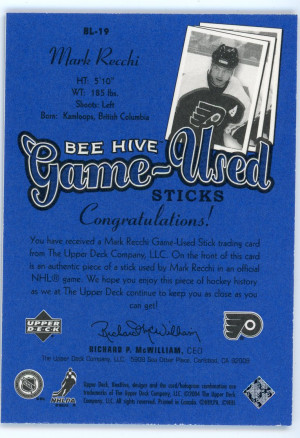 2003-04 Beehive Mark Recchi Game Used Sticks Blue Border #BL-19