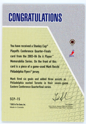2003-04 BAP Memorabilia Mark Recch Stanley Cup Playoffs Jersey 1 of 90 #SCP-15