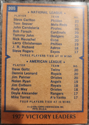 1978 Topps Steve Carlton/ Dave Goltz/ Dennis Leonard/ Jim Palmer Victory Leaders