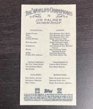 2019 Topps Allen & Ginter - Mini Black Border #76 Jim Palmer Mint