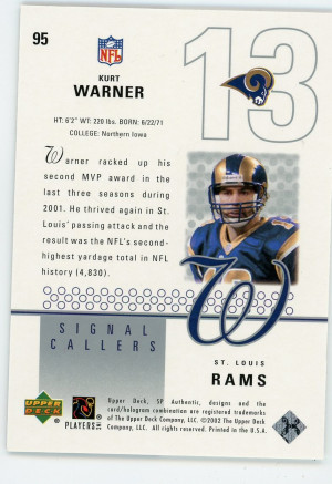 2002 SP Authentic #95 Kurt Warner Signal Callers /2000
