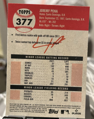 2022 Bowman Chrome JEREMY PENA Rookie Card RC SAPPHIRE #35 - GRADED PSA 9 MINT - Houston Astros