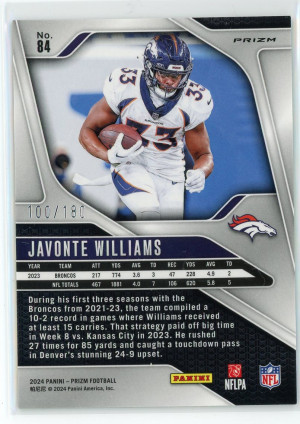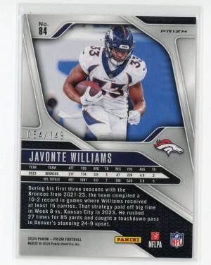 2024 Panini Prizm #84 Javonte Williams Hyper /180