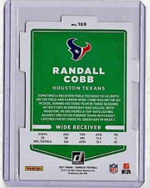 Randall Cobb 2021 Donruss Press Proof Gold Die-cut #169 Houston Texans /25