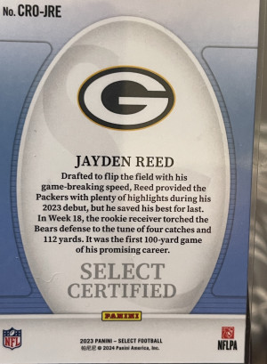 2023 Panini Select - Select Certified Rookies Jayden Reed #CRO-JRE (RC)