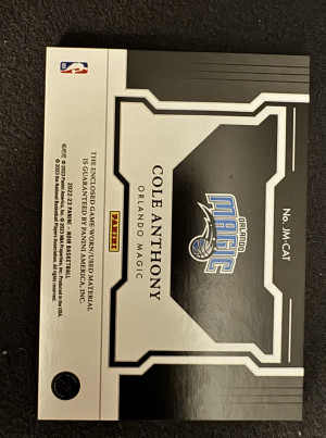 2021-22 National Treasures Cole Anthony Jersey Treasures 1/1 Game Worn Patch