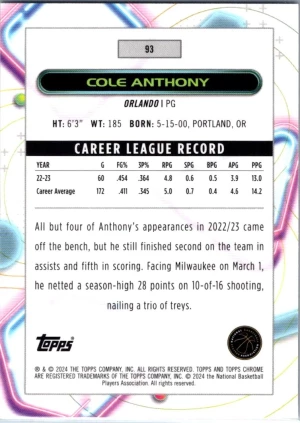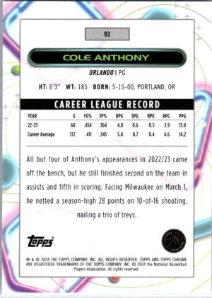 2023-24 Topps Chrome Cosmic #93 Cole Anthony