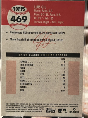 2022 Topps Chrome Sonic Luis Gil SGC 9
