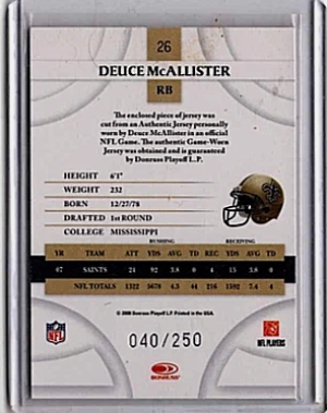 Deuce McAllister - 2008 Donruss Threads #26 Jerseys /250 (MEM)