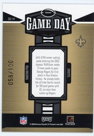 Deuce McAllister 2005 Playoff Honors Game Day Holofoil 58/100 #GD14