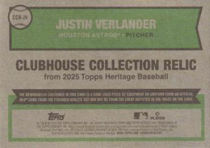 2025 Topps Heritage - Clubhouse Collection Relics #CCR-JV Justin Verlander