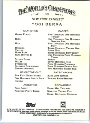 2025 Topps Allen & Ginter #339 Yogi Berra