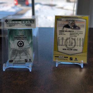 2024-25 O-Pee-Chee Platinum Neon Yellow Surge #100 Connor Hellebuyck 2024-25 Upper Deck Population Count 100 #PC28 Connor Hellebuyck