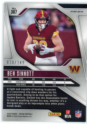 2024 Panini Prizm #307 Ben Sinnott Rookie Red Wave /149