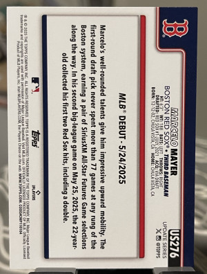 2025 Topps Update Series - Rookie Debut Marcelo Mayer #US276 (RC)