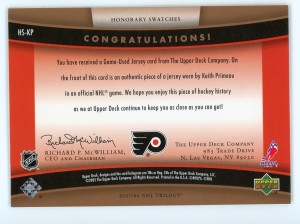 2005-06 Upper Deck Trilogy Keith Primeau Honorary Swatches #HS-KP
