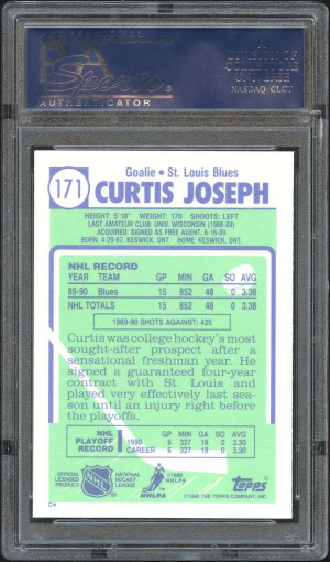 1990-91 Upper Deck Curtis Joseph Star Rookie RC #175 PSA 9 Mint Blues