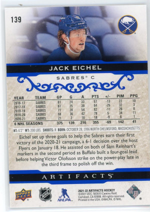 2021-22 Artifacts #139 Jack Eichel Royal Blue 89/199