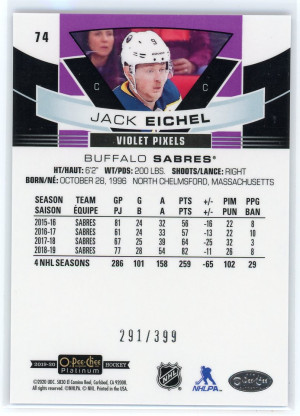 2019-20 O-Pee-Chee Platinum #74 Jack Eichel Violet Pixels /399