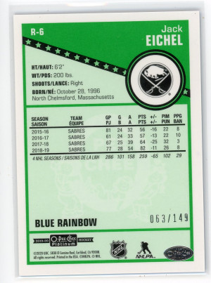 2019-20 O-Pee-Chee Platinum Jack Eichel Retro Rainbow Blue /149 #R-6