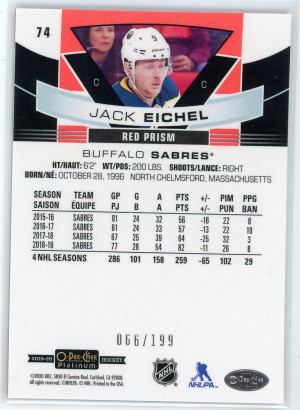 2019-20 O-Pee-Chee Platinum #74 Jack Eichel Red Prism /199