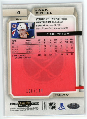 2018-19 O-Pee-Chee Platinum #4 Jack Eichel Red Prism /199