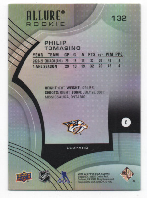 2021-22 Upper Deck Allure Rookies Leopard Parallel #132 Philip Tomasino RC