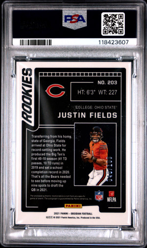 2021 Panini Obsidian Justin Fields Jersey Autograph