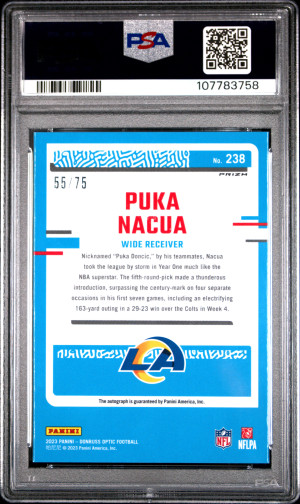 2023 Panini Donruss Optic Puka Nacua Autograph-Red /75 Psa 10