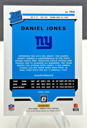 2019 Panini Donruss Optic -Daniel Jones #154 Rated Rookie RC