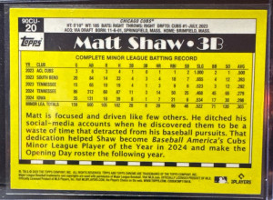 2025 Donruss Rated Prospects #143 Matt Shaw RC - Chicago Cubs