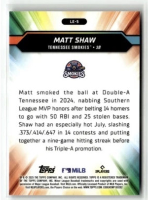 2025 Topps League Elites Matt Shaw #LE-5 Chicago Cubs Rookie RC